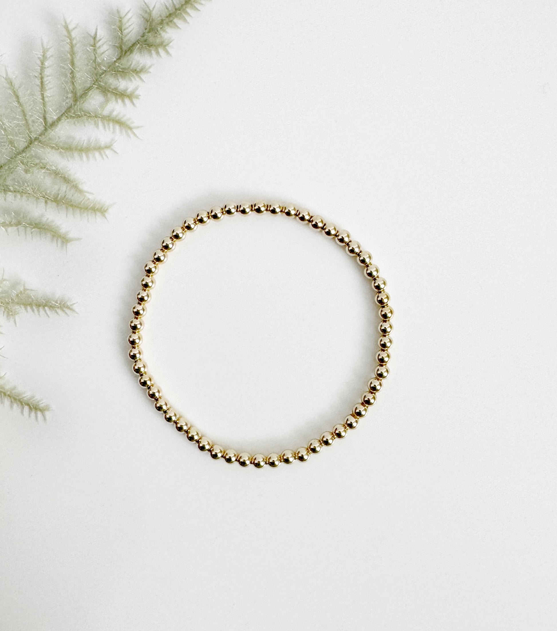The perfect addition to any stack. This gold-filled beaded bracelet can be customized to fit your wrist and is great for everyday wear. It can be worn swimming and showering and will not fade or tarnish.